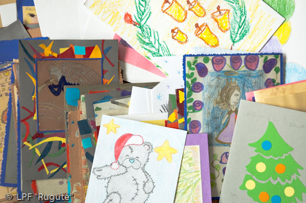 Ankstyvą rudenį gavome mokytojos Viktorijos Šeinos – Vasiliauskienės laišką, kuriame buvo rašoma, kad Vilniaus Mikalojaus Daukšos vidurinės mokyklos mokiniai norėtų prisidėti prie fondo veiklos gražiais darbais. Šiandien džiaugiamės – savo rankose laikome nuostabius rankų darbo atvirukus, kurie artėjant šventėms pasieks fondo rėmėjus ir žmones, visa širdimi esančius su „Rugute“.