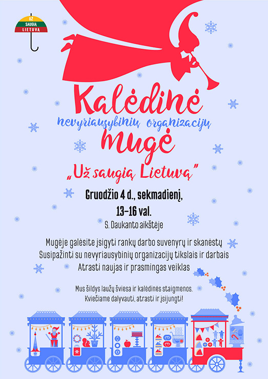 Gruodžio 10 d., sekmadienį, nuo 13.00 iki 16.00 val. Vilniaus S. Daukanto aikštėje vyks tradicinė Kalėdinė nevyriausybinių organizacijų mugė.