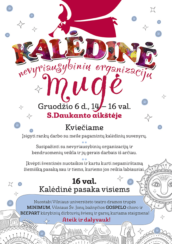 Gruodžio 6 d. nuo 14.00 iki 16.30 val. Vilniaus S. Daukanto aikštėje vyks tradicinė Kalėdinė nevyriausybinių organizacijų mugė.