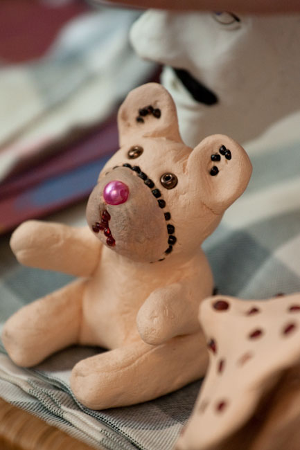 Visus metus laukdami vyksiančios mugės, mažieji savo rankutėmis lankstė, mezgė, vėrė, piešė. Iš karoliukų suvertas papuošalas, iš popieriaus padaryta gulbė, linksmas geltonas katinas ir kiti kūriniai tapo tuo, kas praskaidrino ligoninėje praleidžiamą kasdienybę. Į darbelius jie sudėjo nuoširdžią ir vaikišką savo meilę. O šiandien kiekvienas mažasis Kovotojas nekantriai laukia jo darbeliams neabejingų žmonių ir tikisi, kad galbūt būtent jo sukurtas mažas stebuklėlis taps tuo, kas gali pradžiuginti Jūsų širdis.