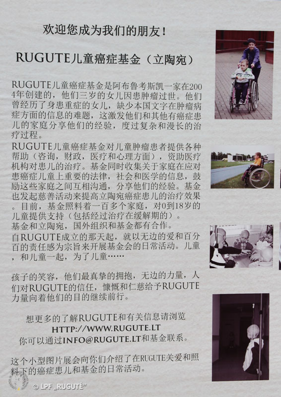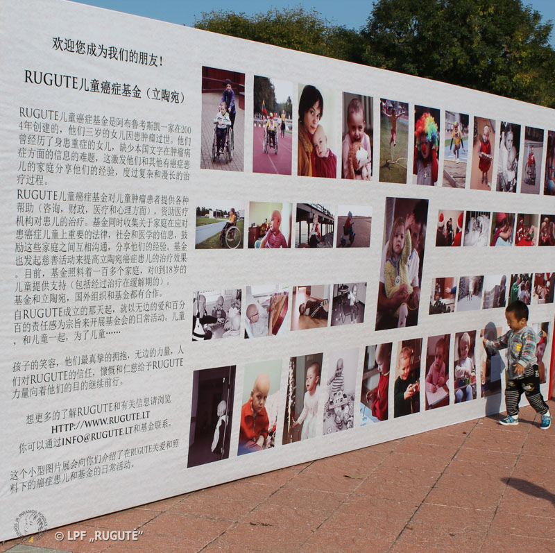 Spalio 1 d. prasidėjusio ir savaitę, Kinijos nacionalinių švenčių metu, truksiančio, šimtus tūkstančių lankytojų pritraukiančio tarptautinio kultūros festivalio Pekine lauko galerijos centre – „Rugutės“ nuotraukos bei fondo pristatymas kinų kalba. „Kviečiame draugauti!“ – paprastais žodžiais prasidedantis „Rugutės“ pristatymas pasakoja apie fondo įkūrimą bei veiklą, kurią lydi absoliuti Meilė: Vaikams, su Vaikais ir dėl Vaikų...