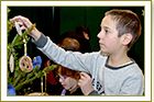 O atkeliavusių jų jau laukė Kalėdų senelis Mykolas ir jo padėjėja Snaigutė. Smagiai žaisdami ir šokdami vaikai pastatė besmegenį, papuošė žaliaskarę eglutę, pasivaišino arbata ir meduoliais.